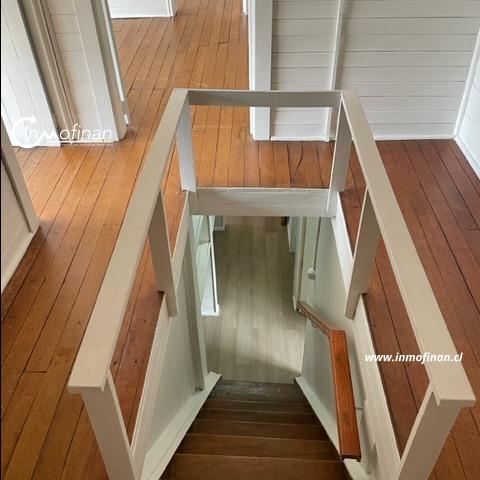 Primer piso: amplio living comedor, revestido de piso flotante, con calefacción estufa a pellets nueva, cocina, dos habitaciones, baño amplio con receptaculo.