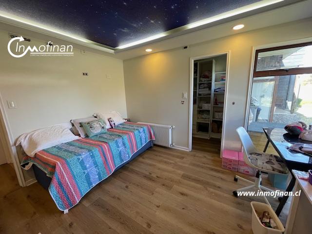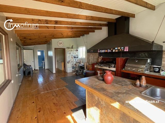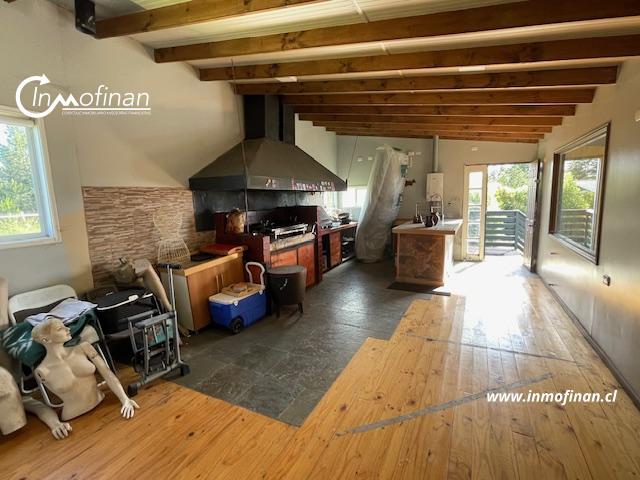 Quincho con construcción de 119 mts.2., con parrilla, comedor, bodega, baño, piscina temperada de hormigón armado, agua potable de pozo, energía eléctrica Crell, portón eléctrico controlado con clave de acceso.